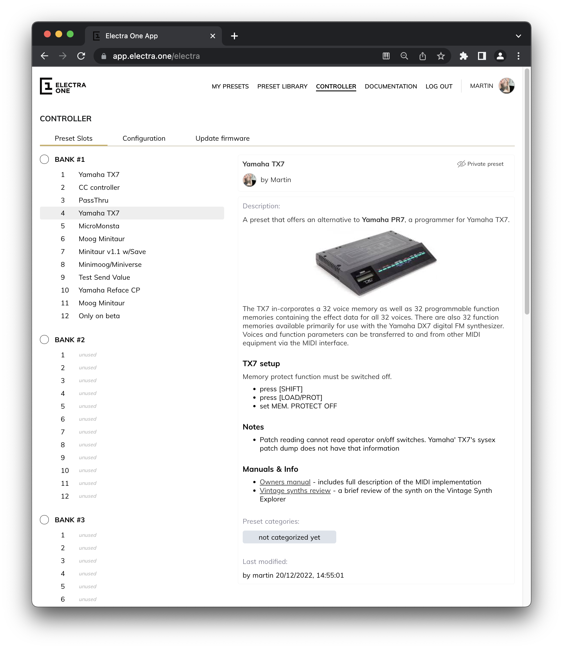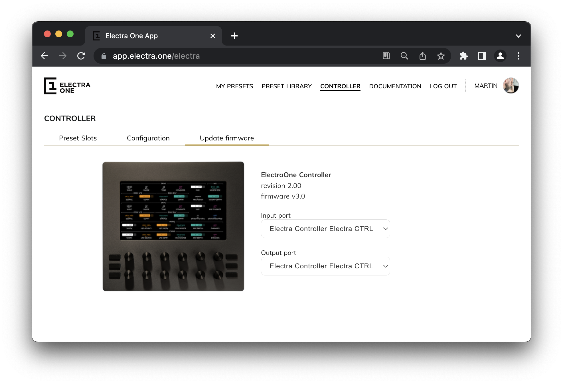 Besides the Preset library, you can use the online service to manage presets and configurations stored in your controller and run firmware updates of the hardware controller.