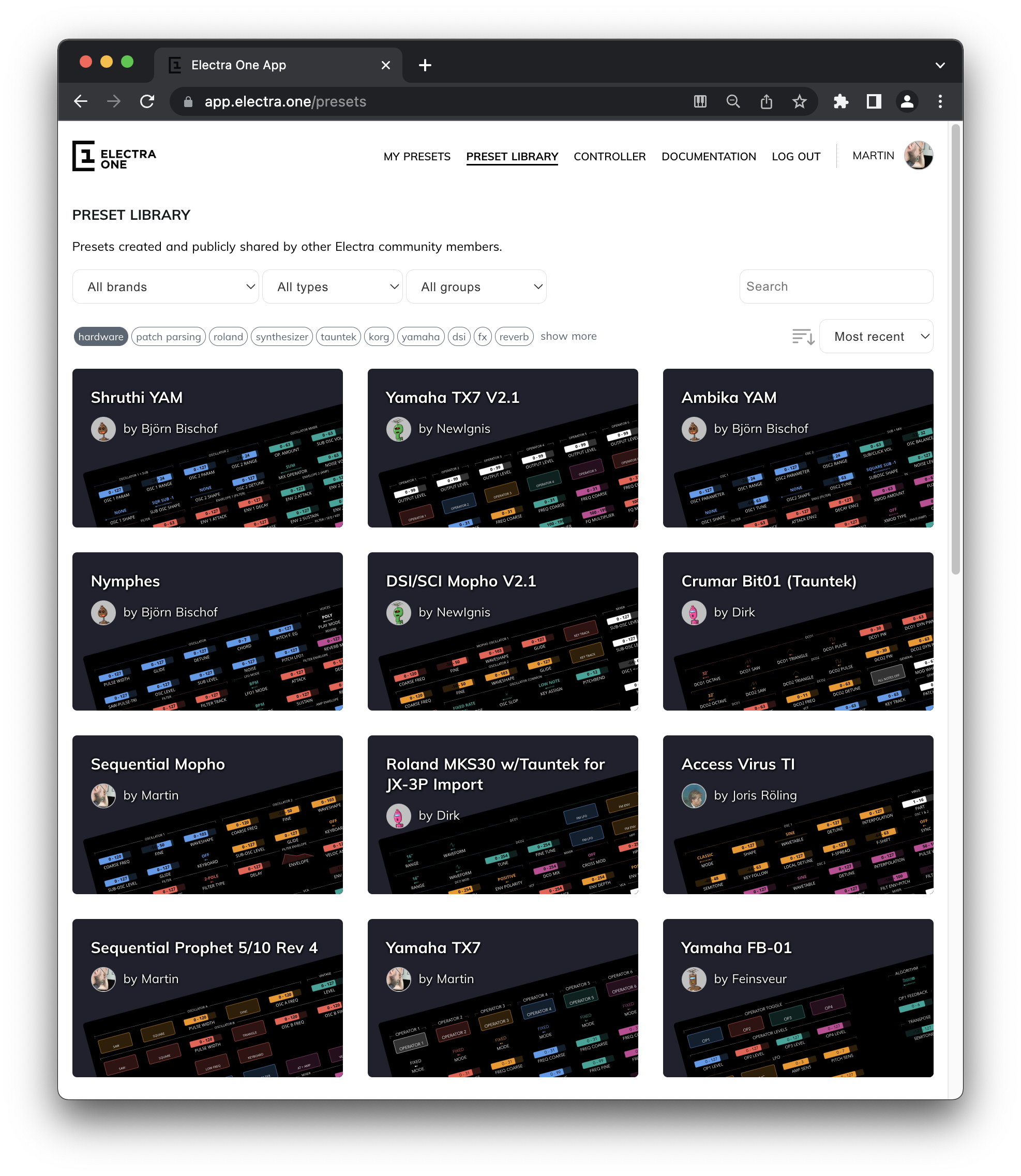 There is more to tell about the Preset library, but for now, you should have a good idea about what it does by now. Let's move to the second bit of Electra One cloud service - the Preset editor.