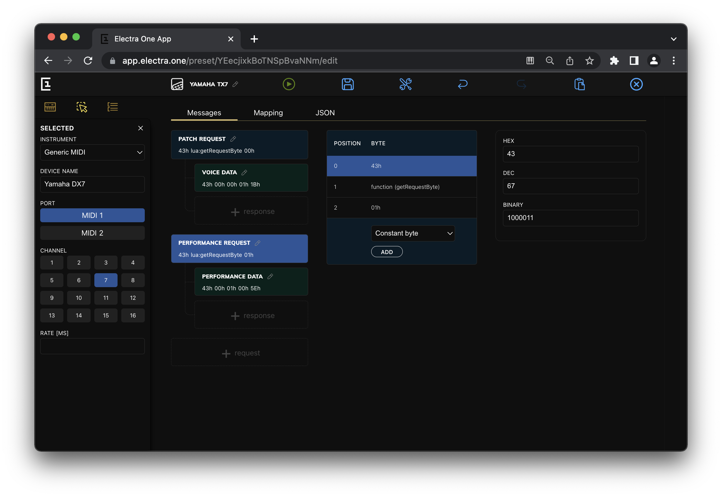 You are not limited to basic functions only. With the Electra One you can go much further. Composing System Exclusive messages and parsing incoming patch dumps is the next step. The most advantageous user can use Lua scriting to take full control over the controller.