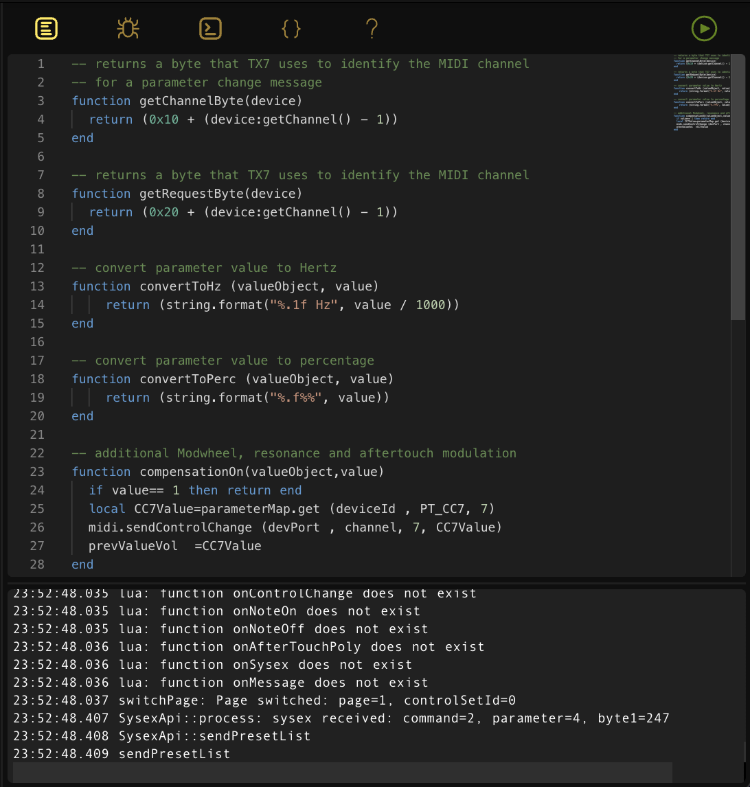 It's also possible to create presets that extend the functionality of the connected device — for example, by adding extra MIDI LFOs or other features using Lua scripting.